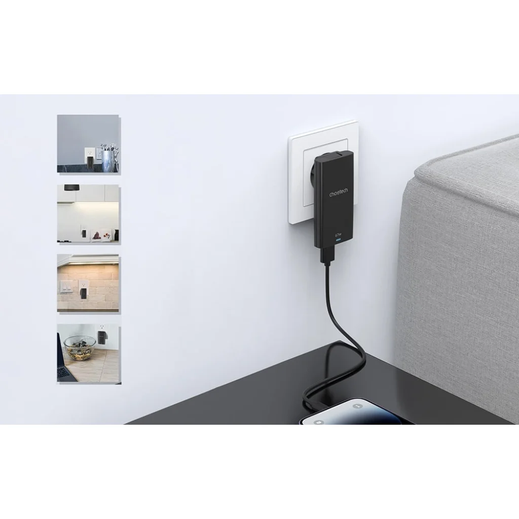 A Choetech hálózati töltő lehetővé teszi két eszköz gyors egyidejű töltését. GaN technológiát használ, amely jobb hőelvezetést, magas működési hatékonyságot és kisebb töltő kialakítást eredményez. Ezen kívül a mellékelt adapterek lehetővé teszik a PD6011 használatát külföldön is.