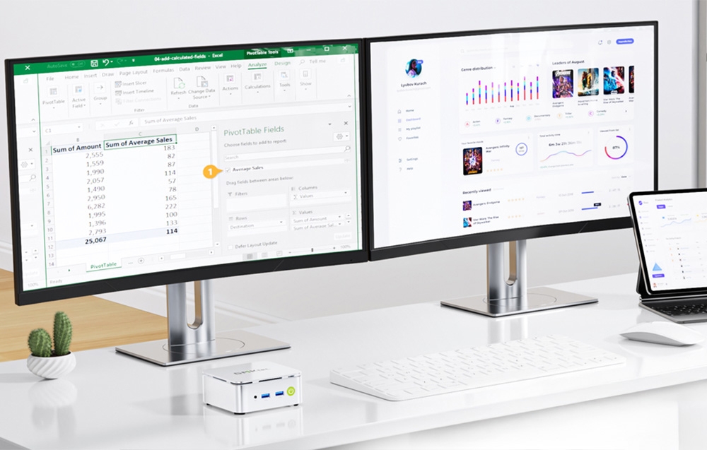 Ha több monitoron dolgozik, vagy a szórakozását a következő szintre szeretné emelni, a MiniPC G10 megfelel a kihívásnak. A három független HD (nagy felbontású, nagy felbontású) képernyő támogatása lehetővé teszi, hogy több monitorral kibővített munkaállomást hozzon létre, a 4K@60 Hz natív támogatása pedig lenyűgözően éles és egyenletes filmeket, játékokat vagy prezentációkat tesz lehetővé. Egyszerűen csatlakoztasson monitorokat vagy egy TV-t, hogy pillanatok alatt lenyűgöző többképernyős konfigurációt hozzon létre.