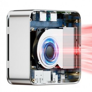 A MiniPC G10 fejlett hűtőrendszere rendkívül csendes működést biztosít, a zajszintet 35 dB alatt tartja. Ez kevesebb, mint egy suttogás a könyvtárban, így a munkára vagy a szórakozásra koncentrálhat anélkül, hogy a ventilátor zaja megzavarná. A hűtőrendszer ugyanakkor hatékonyan vezeti el a hőt, így a processzor és a Radeon Vega 8 grafikus chip (akár 1200 MHz-es órajelen) teljes teljesítményen működhet, anélkül, hogy túlmelegedéstől kellene tartani.