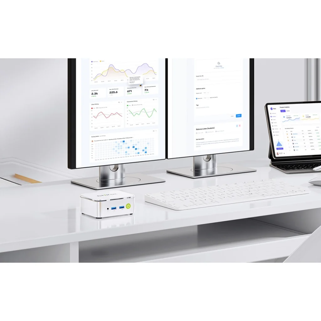 A mindössze 0,42 literes térfogatával és minimalista, elegáns kivitelével a MiniPC G10 tökéletesen elfér bármely íróasztalon, a monitor mögött vagy útközben. Ideális olyan szakemberek, tartalomkészítők és a technológia szerelmesei számára, akiknek fontos a maximális teljesítmény minimális helyigény mellett. Rendezettebbé teszi a munkaállomását és növeli a mobilitást.