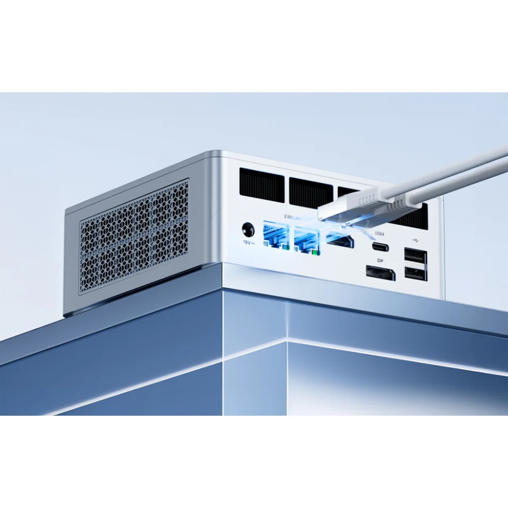 Ultragyors hálózat és modern csatlakozási lehetőségek. A két 2,5 GbE LAN-port nagyon gyors és stabil vezetékes kapcsolatot biztosít, ami fontos a modern munkakörnyezetben, nagy fájlok átvitelekor vagy szerverekkel való munkavégzéskor. Emellett rendelkezésre áll egy teljes funkcionalitású, akár 40 Gb/s sávszélességű USB4 is, Power Delivery támogatással (bemenet/kimenet), amely gyors adatátvitelt és a modern eszközök rugalmas csatlakoztatását teszi lehetővé. Vezeték nélkül a számítógép Wi-Fi 6E és Bluetooth 5.2 technológiát használ, ami stabil kapcsolatot biztosít a hálózathoz és a kiegészítőkhöz, például fejhallgatókhoz, billentyűzetekhez és egerekhez.