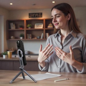 - Ideális tartalomgyártáshoz és kommunikációhoz: Legyen szó vlogolásról, élő közvetítésről, videóhívásokról vagy egyszerűen csak egy kényelmes filmnézésről, ez az állvány stabilan tartja telefonját, miközben kezei szabadon maradnak.