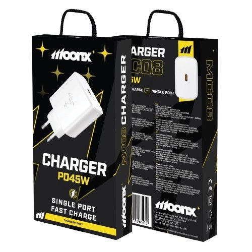 - MOONX MC08 fali töltő PD 45W 1xUSB-C Fehér (kábel nélkül)