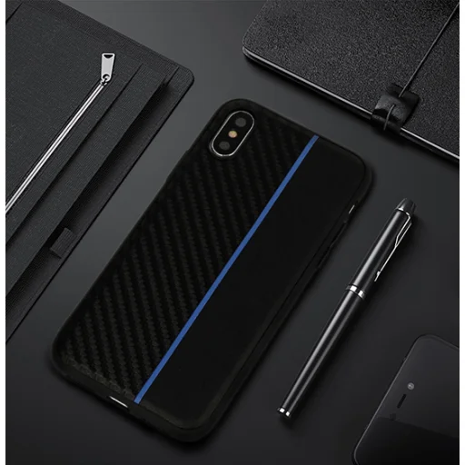 MOTO CARBON tok Samsung Galaxy A6 Plus 2018 fekete, kék csíkkal