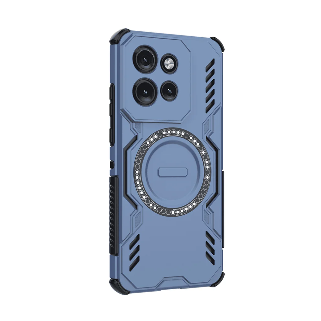 - Modern esztétika: A vibráló kék szín fekete, taktikai stílusú élekkel és bordázott textúrával párosul, dinamikus és futurisztikus megjelenést kölcsönözve telefonjának.