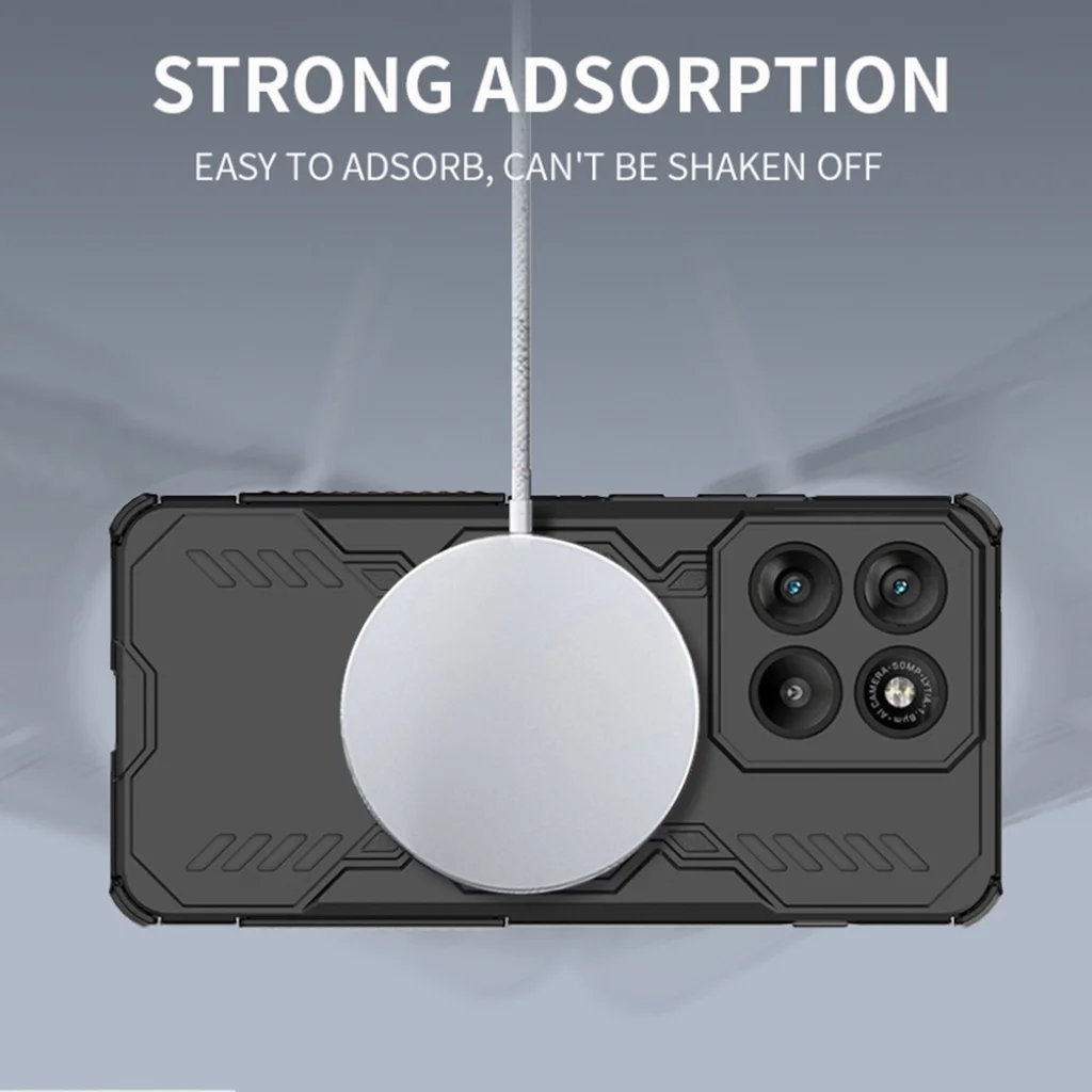 - ArmorMag kompatibilitás: A tok hátoldalán található elegáns, mágneses gyűrű lehetővé teszi a MagSafe-kompatibilis tartozékok (például vezeték nélküli töltők vagy autós tartók) egyszerű és rendkívül erős rögzítését. Az "STRONG ADSORPTION" funkciónak köszönhetően a kiegészítők szilárdan tapadnak és nem rázódnak le, biztosítva a stabil kapcsolatot.
