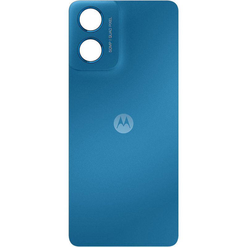 Hátlap Motorola Moto G04s-hez - szaténkék. Eredeti Motorola licensz alatt gyártott pótalkatrész, a telefon sérült hátlapjának cseréjére szolgál. Tartalmaz ragasztót is.