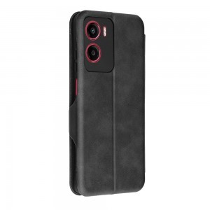 - Időtlen fekete szín: Az elegáns fekete szín, a finom textúrájú műbőr felület prémium megjelenést kölcsönöz a toknak, amely diszkréten kiegészíti telefonja stílusát.