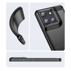 A tok kiváló minőségű szilikonból készült, mely rugalmas és rendkívül strapabíró, kiválóan elnyeli az ütéseket. A hátlap modern, szálcsiszolt fémhatású textúrát kapott, amely elegáns megjelenést kölcsönöz a telefonnak, miközben ellenáll az ujjlenyomatoknak és a kisebb karcolásoknak. A tok felső és alsó részén elhelyezett karbon mintázatú betétek nem csupán dizájnelemek, hanem fokozzák a fogást és extra sportos eleganciát biztosítanak. A letisztult fekete szín időtálló és minden stílushoz illik.