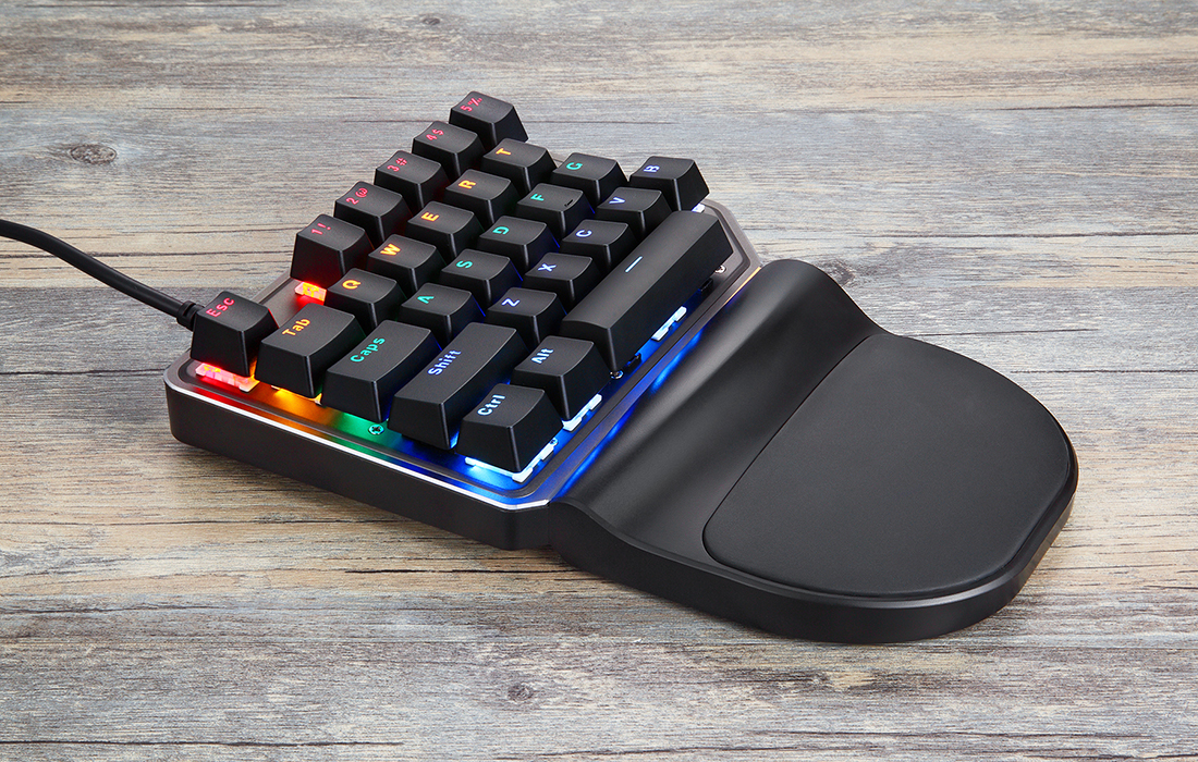 A Motospeed K27 egy modern billentyűzet, amely a legfontosabb gombokat tartalmazza az FPS játékokat kedvelők számára. Könnyedén és kényelmesen használható egy kézzel. Az okos kialakítás, valamint a dedikált csuklótámasz csökkenti a fáradtság érzetét és növeli a komfortot használat közben. A Motospeed K27 egy teljesen új szintű játékélményt nyújt. A Motospeed K27 játék billentyűzet 27 mechanikus billentyűvel van felszerelve, amelyek lehetővé teszik kiváló eredmények elérését és új rekordok megdöntését a játékmenet során. A készülék különleges kialakítása páratlan kényelmet biztosít.