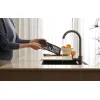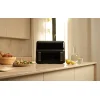 A készülék fémbelsője kiküszöböli a műanyagszagok kockázatát működés közben. A tapadásmentes bevonat mind a kosár belsejében, mind a grilllapokon jelentősen megkönnyíti a tisztítást. A nagyméretű, megvilágítással ellátott ablakon kényelmesen nyomon követheti a sütési folyamatot, a kosár kinyitásakor automatikus leállítási funkció pedig lehetővé teszi, hogy kényelmesen adjon hozzá fűszereket és keverje meg az ételeket anélkül, hogy vissza kellene állítani a beállításokat.