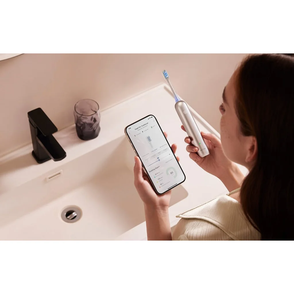 A MOVA Fresh Pro egy intelligens elektromos fogkefe fejlett technológiával és a MOVAhome alkalmazás segítségével, amely hatékony és kíméletes tisztítást biztosít. Nagyfrekvenciás mozgásának köszönhetően akár 8-szor több lepedéket távolít el, mint a kézi fogkefék. Az intelligens fénygyűrű védi az ínyt, az IPX7 vízállóság pedig lehetővé teszi a zuhany alatti használatot. A vezeték nélküli töltés és az akár 30 napos akkumulátor-üzemidő mindennapi kényelmet biztosít. Ez egy minden egyben megoldás az egészséges és szép mosolyért!