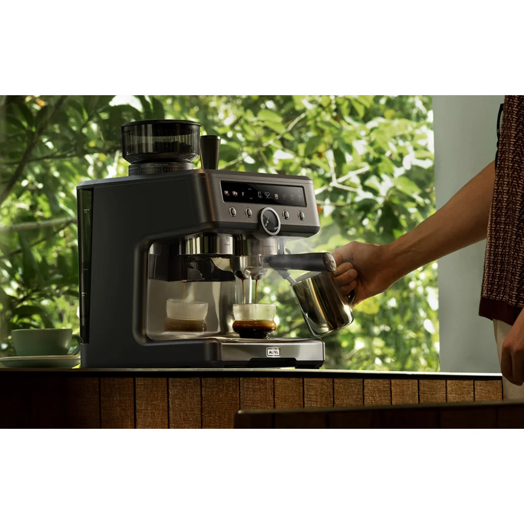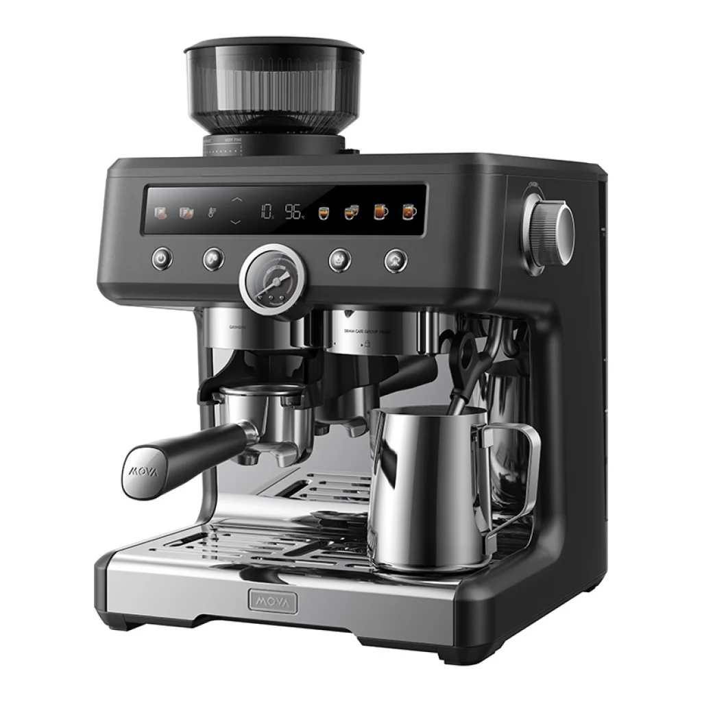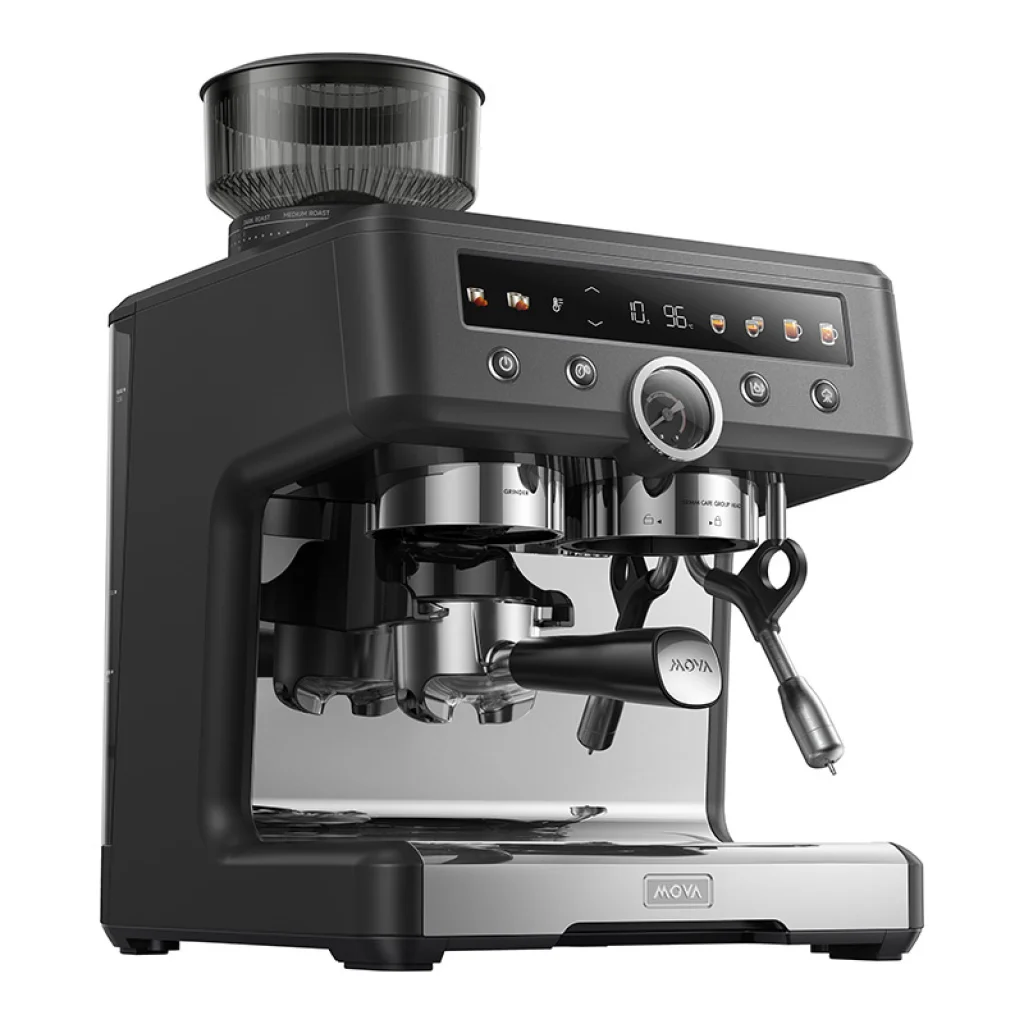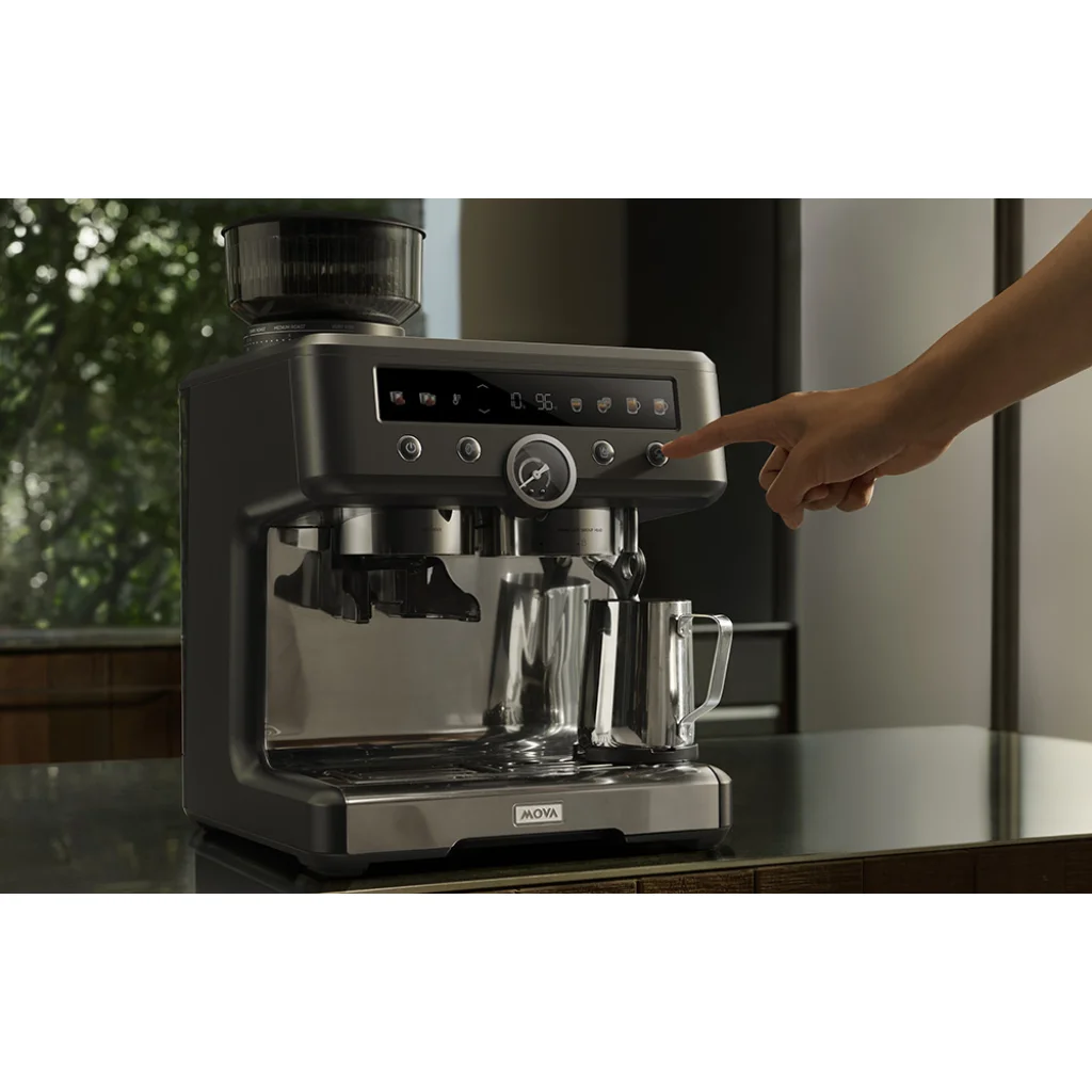 A MOVA S20 Pro egy eszpresszógép, amelyet azok számára hoztak létre, akik nagyszerű ízű kávét szeretnének élvezni anélkül, hogy elhagynák otthonukat. A készülék egyesíti magában a 34 fokozatú beállítással rendelkező kúpos őrlőt, a kettős kazán- és szivattyúrendszert, valamint a háromszoros tejhabosító rendszert. Ez lehetővé teszi a klasszikus eszpresszó és a krémes, tökéletes habbal rendelkező cappuccino elkészítését. A 250 g-os, szilikon tömítéssel ellátott, szivárgásmentes babtartály megóvja a kávé frissességét és aromáját, míg az Anti-Static Grinding funkció megakadályozza, hogy az őrölt babok leragadjanak és kifolyjanak. A stabil főzési hőmérséklet, a 20 bar nyomás és a teljesen testreszabható paraméterek lehetővé teszik, hogy pontosan olyan főzetet kapjon, amilyet szeretne - aromás, intenzív és ízgazdag.