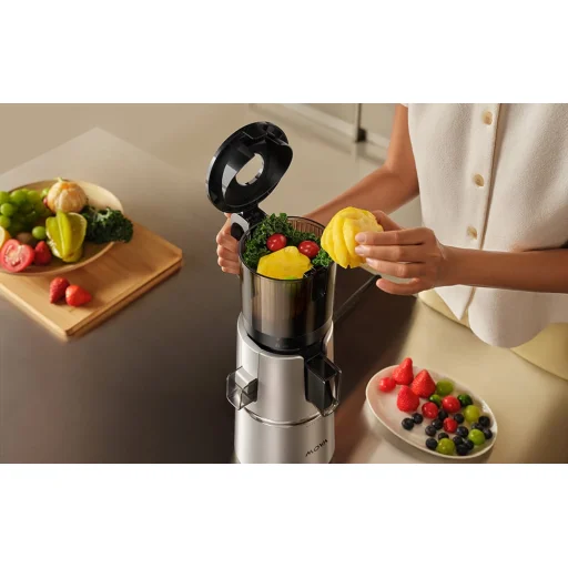 A MOVA SJ10 széles, 120 milliméteres nyílást használ, így egész almát vagy körtét dobhat bele anélkül, hogy előbb felszeletelné, időt takarítva meg és csökkentve a konyhai rendetlenséget. A kényelem érdekében a készülék további 45 milliméteres bemenettel is rendelkezik, amely ideális a hosszabb hozzávalók, például sárgarépa vagy zeller behelyezéséhez.