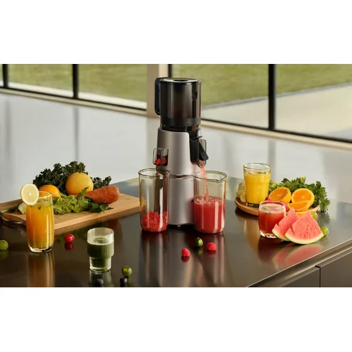 A kettős szűrőrendszer elválasztja a gyümölcslevet a gyümölcshústól, így bársonyos, gyümölcshúsrészecskék nélküli italt kap, amely ízével Önt és szeretteit is megörvendezteti.