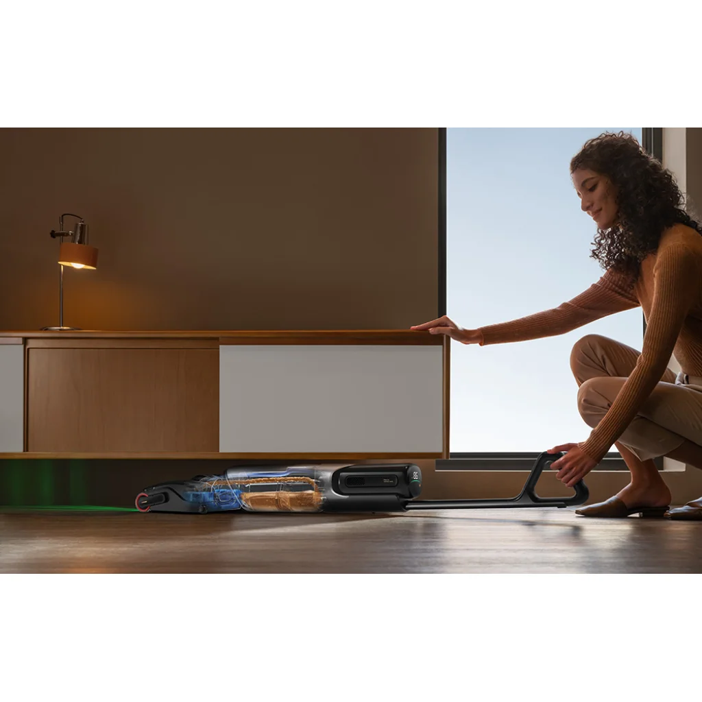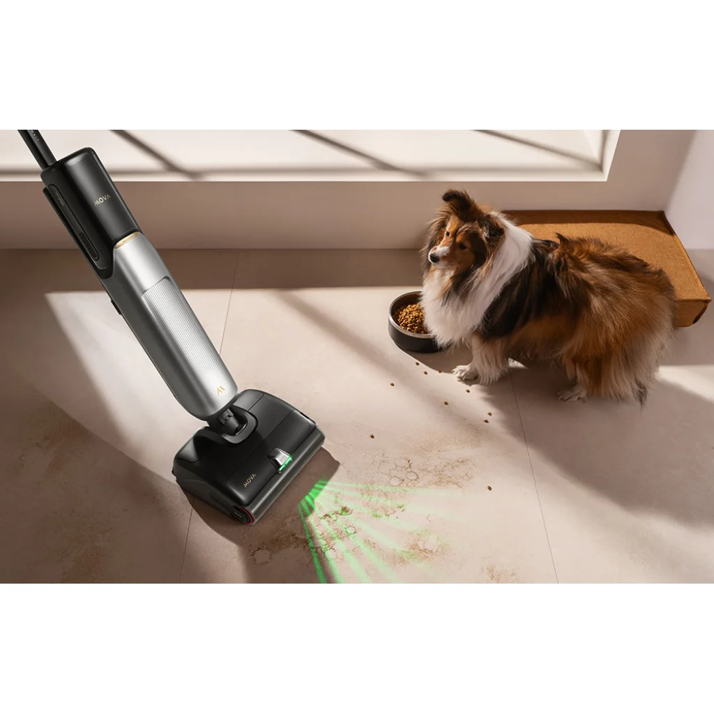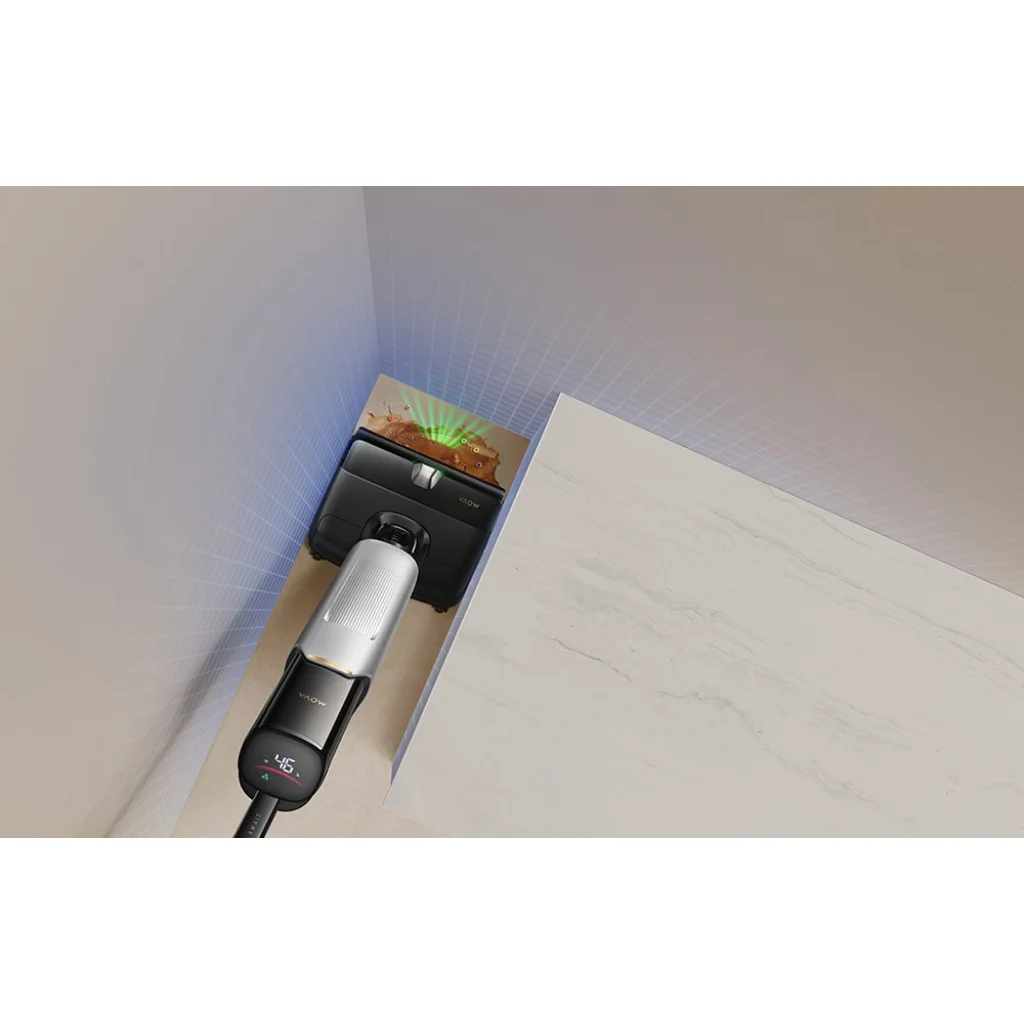 A MOVA X4 Pro akkumulátoros mop porszívó a legújabb fejlesztés az otthoni takarításban. Kivételes szívóereje (20 000 Pa), fejlett forróvizes technológiája (akár 80 °C-ig felmosáskor és akár 100 °C-ig kefemosáskor), intelligens öntisztítása, csendes szárítása és kényelmes működése egyszerűvé, gyorsabbá és rendkívül hatékonnyá teszi a mindennapi otthoni ápolást. Ha tökéletes tisztaságra, kiváló higiéniára és példátlan kényelemre vágyik, a MOVA X4 Pro kiváló választás lesz. Készüljön fel a takarítás új dimenziójára - szerezzen friss, csíkmentes padlót és időt magának, miközben a MOVA X4 Pro gondoskodik a többiről! Forradalmi forróvizes padlótisztítási technológia A MOVA X4 Pro felmosáskor felmelegített vizet használ (akár 80°C-os), ami a hagyományos módszerekhez képest gyorsabb szennyeződésoldást és akár tízszer hatékonyabb folteltávolítást jelent. Az alkalmazott SpotHeat™ technológia tovább segíti a folyamatot azáltal, hogy intenzíven permetezi a forró vizet a kemény foltokra. A tisztítás során a készülék folyamatosan tiszta forró vizet juttat a kefe felületére. Ennek eredményeképpen a padló minden egyes mozdulattal hatékonyan tisztul, ami kiváló végeredményt és teljes higiéniát eredményez. Alapos padlótisztítás A nagy teljesítményű, 104 000 fordulat/perc motor 20 000 Pa szívóerőt biztosít. A MOVA X4 Pro könnyedén megbirkózik a finom porral, az állatszőrrel vagy a morzsákkal, valamint a nedves szennyeződésekkel és a megszáradt foltokkal. A 180°-os Lie-Flat Reach technológiának köszönhetően a készülék a bútorok alá és az alacsony helyekre is elér, és a nehezen elérhető sarkokból is felszedi a port, a szőrszálakat és a morzsákat. A beépített folyadékzáró rendszer megvédi a motort a piszkos víz visszafolyásától, és vízszintes működés esetén is egyenletes szívóteljesítményt biztosít. A fejre integrált LED-világítás segít a rejtett szennyeződések és por felfogásában - még a gyengén megvilágított helyiségekben is. Fejlett technológiák Egy innovatív rendszer megakadályozza, hogy a hajszálak összegubancolódjanak a kefén. A finoman fogazott kaparó és a "fésűs" kialakítás hatékonyan felszedi a hajat, azonnal eltávolítja azt, és kiszorítja a szennyeződést a keféből. A kefe speciálisan kialakított dupla éle lehetővé teszi, hogy alaposan tisztítson a falak és az alaplécek mentén, akár a peremtől 0 mm-re is, anélkül, hogy por- vagy szennyeződésfoltot hagyna maga után. Intelligens és kényelmes öntisztítás Az alapállást úgy tervezték, hogy a porszívót felemelés vagy elfordítás nélkül csúsztathatja az alapba. Még akkor is könnyen visszahelyezhető a helyére, ha a víztartály megtelt. A MOVA X4 Pro automatikusan tisztítja a kefét nagyon magas hőmérsékleten (100°C), ami garantálja az erős szennyeződések hatékony eltávolítását és a fertőtlenítést. Az ötlépcsős tisztítási folyamat (merítés, mosás, préselés, szívás és kétirányú súrolás) tökéletes higiéniát biztosít az Ön közreműködése nélkül. A szennyeződésérzékelők automatikusan ellenőrzik, hogy a mosás után a kefe tökéletesen tiszta-e. Ha a rendszer maradék szennyeződést észlel, további öblítést végez, így mindig garantált a tökéletes tisztaság. Hatékony szárítás - gondoskodik a keféről és a higiéniáról. Válasszon két szárítási mód közül, hogy az időt és az intenzitási szintet igényeihez igazítsa. A MOVA X4 Pro 90°C-os forró levegővel szárítja a kefét, ami kiküszöböli a baktériumok elszaporodásának és a kellemetlen szagoknak a kockázatát. A készülék az Auto-Adjust Drying Time funkció segítségével a nedvességtartalomtól függően magától eldönti, hogy 15 vagy 30 percig szárítsa a kefét. Zárt kialakításának köszönhetően mind az Intelligens szárítás (55 dBA), mind a Gyors szárítás (63 dBA) üzemmód elég diszkréten működik ahhoz, hogy a hangerő felhangosítása nélkül nézhesse kedvenc tévéműsorát. A szárítási folyamat a forró levegő mellett centrifugális erőt is használ, ami még gyorsabb és hatékonyabb vízlecsapolást jelent a keféről. Sokoldalú forró vizes tisztítás Forró vízzel és nagy nyomással a MOVA X4 Pro könnyedén eltávolítja a megszáradt, kemény foltokat és a kellemetlen szagokat a különböző típusú felületekről. Egyszerűen kapcsolja be a forróvíz üzemmódot, és nyomjon meg egy gombot a fogantyún, hogy elindítsa a 10 másodperces 20 000 Pa SpotHeat™ permetet - ez különösen a mélyen gyökerező szennyeződések esetében hatékony módszer. A felmosóhenger azonnal felszívja a felesleges vizet, megakadályozva a csúnya foltok kialakulását a padlón. Ez minimálisra csökkenti a beázás vagy a felület károsodásának kockázatát, még a forró vízzel történő intenzív tisztítás után is. Megbízható ellenállás a magas hőmérsékletekkel szemben A MOVA X4 Pro fejlett hőálló alkatrészekkel van felszerelve. Mind a kefét, mind a speciális kaparót úgy tervezték, hogy akár 100°C-os víz- és levegőhőmérsékletet is kibírjon, így fenntartva a tartósságot és a nagy hatékonyságot. Kényelmes kezelés és hosszú üzemidő A porszívó könnyű súlyának (1,1 kg) és ergonomikus fogantyújának köszönhetően kényelmesen kezelhető. A kiegészítő mini kerekek megkönnyítik az előre és hátra mozgást - különösen, ha fekvő üzemmódban dolgozik (180° Lie-Flat Reach). A fej 60°-os elforgatásának képessége lehetővé teszi, hogy könnyedén kikerülje az asztalok, székek és egyéb akadályok lábait. A takarítás egyszerűbbé és pontosabbá válik. Ezenkívül a készülék automatikusan a padlón lévő szennyeződés szintjéhez igazítja a szívótelj