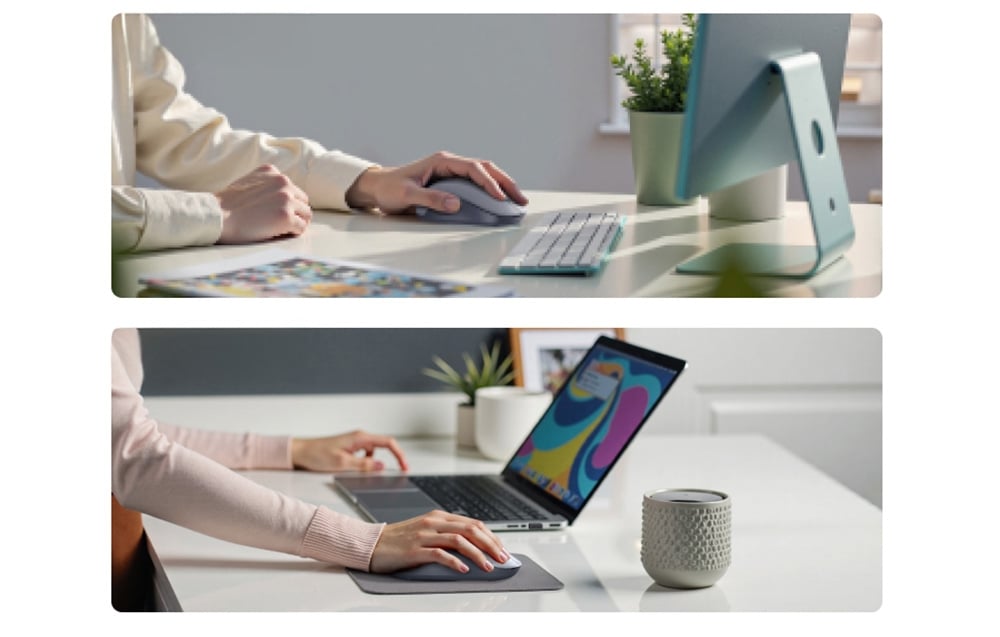 Az Ugreen M331 egér két csatlakozási módot támogat - Bluetooth 5.4 és 2,4 GHz -, amelyeket egy gombnyomással válthat. Így gyorsan párosíthatja laptopjával, táblagépével, asztali számítógépével vagy akár okostelefonjával anélkül, hogy ki kellene húznia és be kellene dugnia egy USB-vevőt (Universal Serial Bus, egy kommunikációs szabvány, amely lehetővé teszi a különböző elektronikus eszközök áramellátását és töltését). Ez kényelmes megoldás azoknak, akik a nap folyamán különböző eszközöket használnak.