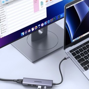 Ugreen 5 az 1-ben multifunkciós USB-C HUB - 3x USB 3.2 Gen 1 / HDMI 1.4 4K 30Hz / USB-C PD 100W szürke (CM511) A laptopodon vagy számítógépeden nincs elég port, amit a mindennapi munka vagy szórakozás során használhatnál? Hiányoznak a különböző szabványú kiegészítő csatlakozók? Ha igen, ez az Ugreen márkájú kütyü tökéletes választás számodra. Egyetlen eszközzel számos további portot biztosítasz, amelyeket gond nélkül használhatsz. Ezáltal új lehetőségeket fedezhetsz fel a számítógépedben.