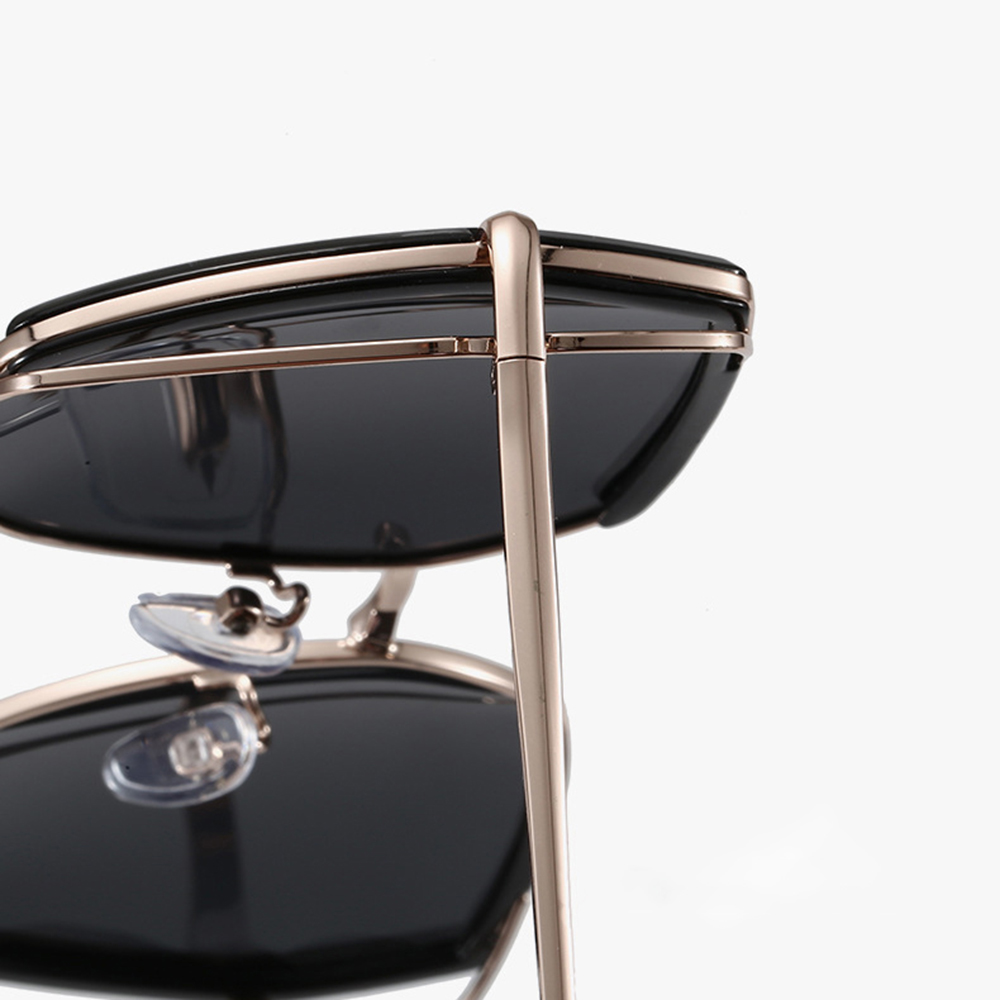 Készülj fel arra, hogy „csillag leszel, akárcsak a nap!”, hiszen ezzel a napszemüveggel garantáltan magadra vonzod a tekinteteket. Az egyedi, hatszögletű design és a kifinomult fém keret tökéletes összhangot teremt a modern eleganciával. Válaszd a finom arany keretet barna részletekkel és rózsaszín-szürke átmenetes lencsékkel az exkluzív megjelenésért, vagy a klasszikus arany keretet mélyfekete polarizált lencsékkel a magabiztos eleganciáért. Mindkét változat segít, hogy „mindig a reflektorfényben légy a megfelelő szemüveggel!”