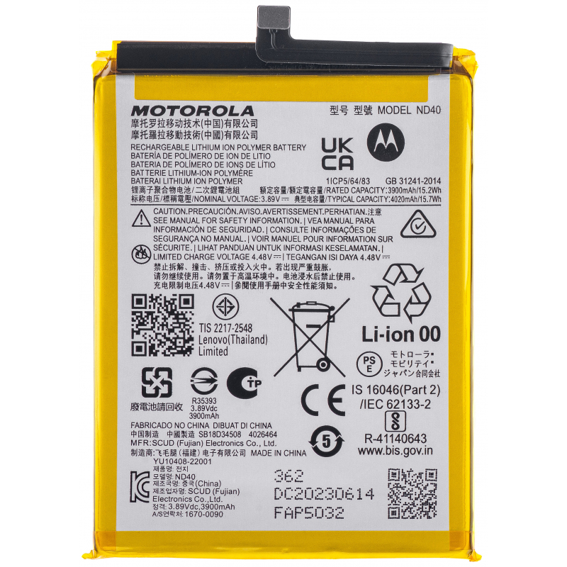 Motorola ND40 akkumulátor Edge 30-hoz SB18D34507 Eredeti alkatrész Samsung licenccel, amelyet a telefon meghibásodott akkumulátorának cseréjére használhatunk.