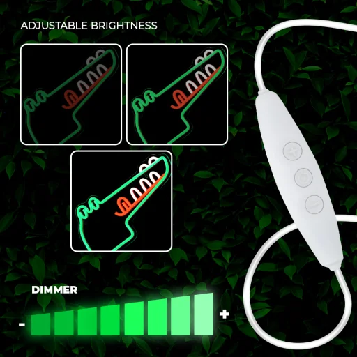 A beépített sötétítő funkció lehetővé teszi a neon által kibocsátott fény fényerejének szabályozását. Emellett a krokodil LED egy be-/kikapcsoló kapcsolóval is rendelkezik, ami lehetővé teszi a neon egyszerű be- és kikapcsolását anélkül, hogy kihúznánk a tápegységből.