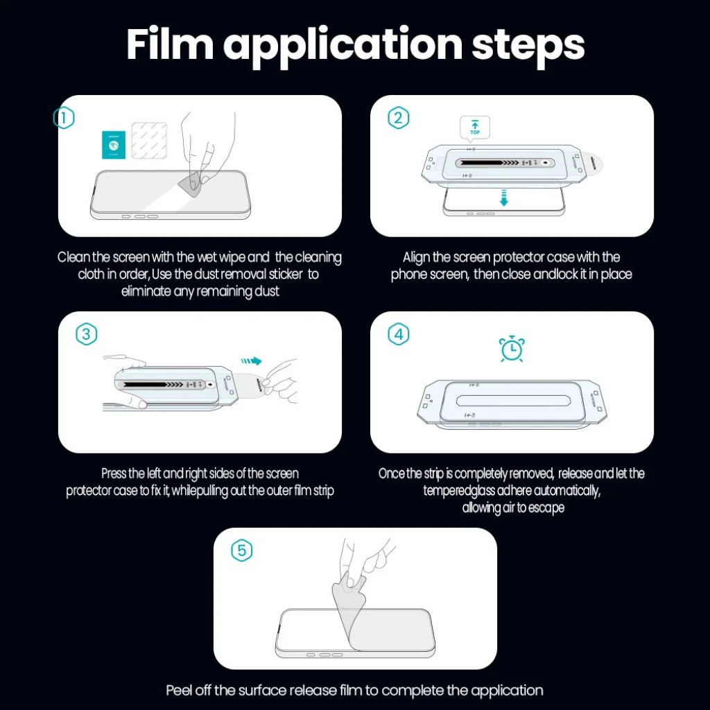 Ennek köszönhetően könnyedén telepítheti az edzett üveget a kijelzőre a helytelen elhelyezés vagy légbuborékok kialakulásának veszélye nélkül.