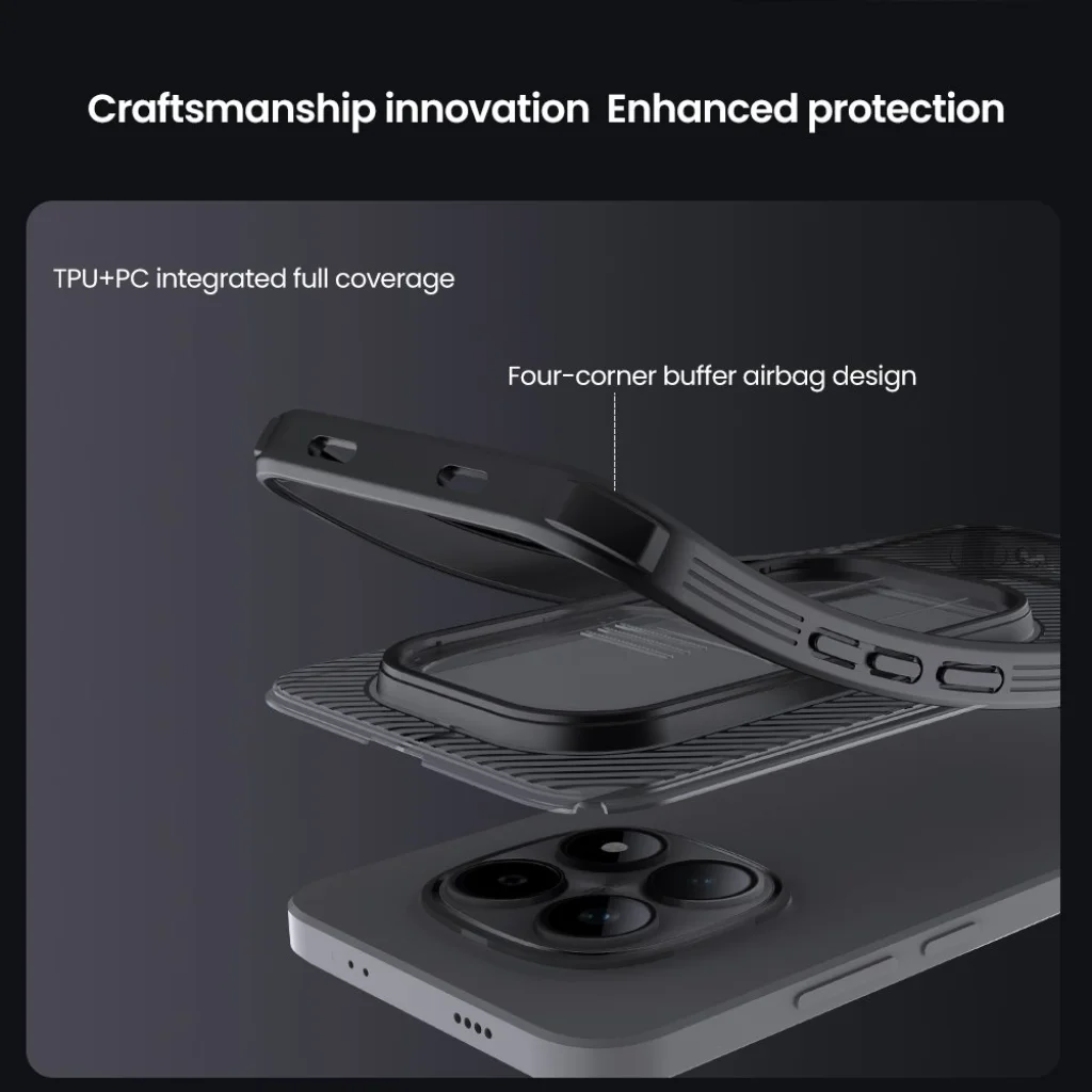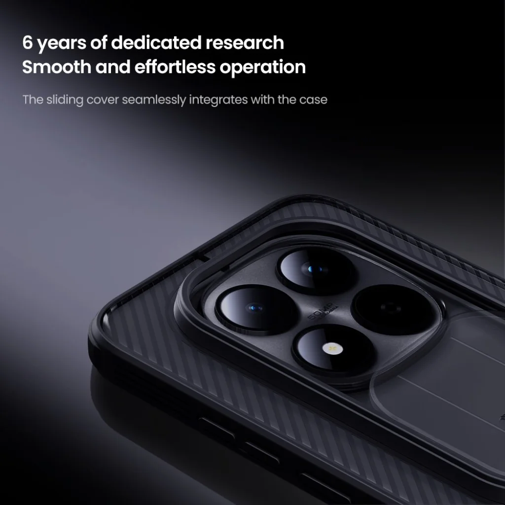 A Nillkin CamShield PRO legkiemelkedőbb tulajdonsága az innovatív, csúsztatható kamerafedél. Ez a praktikus mechanizmus tökéletes védelmet nyújt a Xiaomi Redmi Note 15 Pro 5G érzékeny kameramoduljának a karcolások, por, szennyeződések és ütődések ellen. A hat éves dedikált kutatásnak és fejlesztésnek köszönhetően a fedél működése rendkívül sima és könnyed, zökkenőmentesen illeszkedik a tok dizájnjába, így bármikor azonnal hozzáférhet a kamerához, majd biztonságosan elrejtheti.