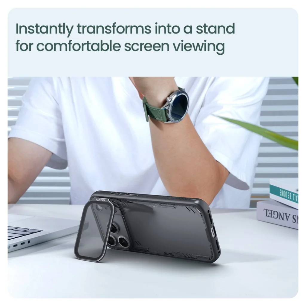 A Nillkin Iceblade Prop egy egyedi tok, amely megújuló forrásokból készült, és rendelkezik egy felhajtható kameravédő fedéllel.