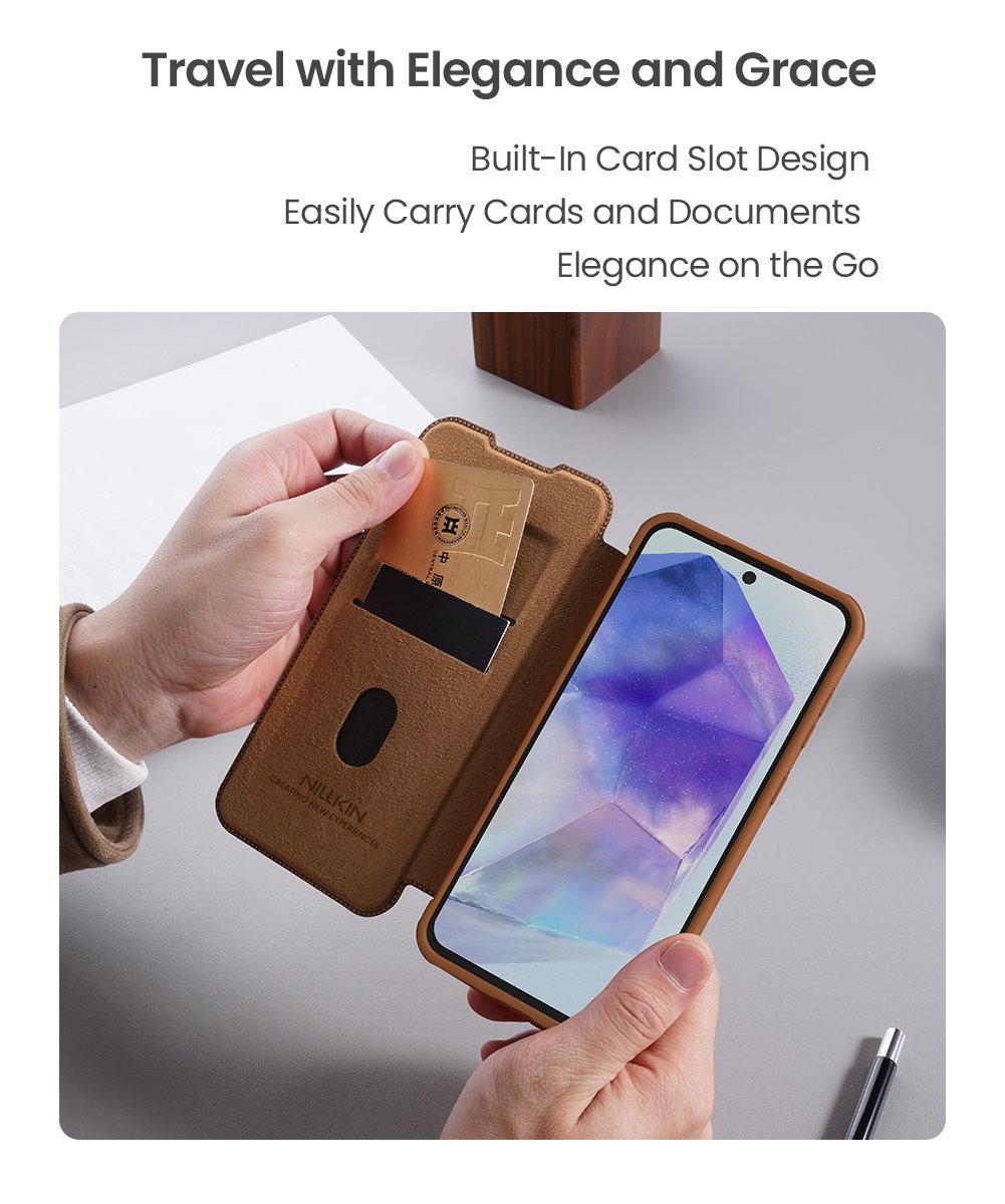A Nillkin QIN Book PRO fliptok kiváló minőségű PU bőrből készült, oldalt nyílik, mint egy könyv, és a klasszikus QIN Book-hoz képest csúszó kamera lencsevédővel van felszerelve.