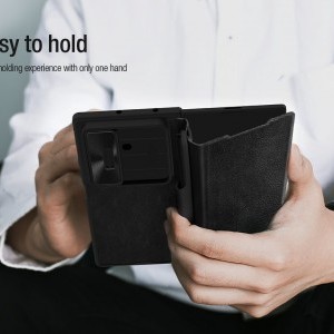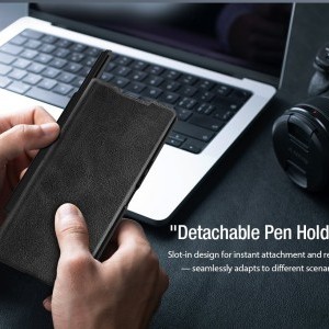 A Nillkin QIN Book PRO tok kiváló minőségű PU bőrből készült, és oldalra nyílik, mint egy könyv. Emellett, a klasszikus QIN Book-kal ellentétben, csúsztatható kamera lencsevédővel rendelkezik.