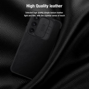 A Nillkin QIN Book PRO tok kiváló minőségű PU bőrből készült, oldalt nyílik, mint egy könyv, és a klasszikus QIN Book modellhez képest csúsztatható kamerafedéllel van ellátva.