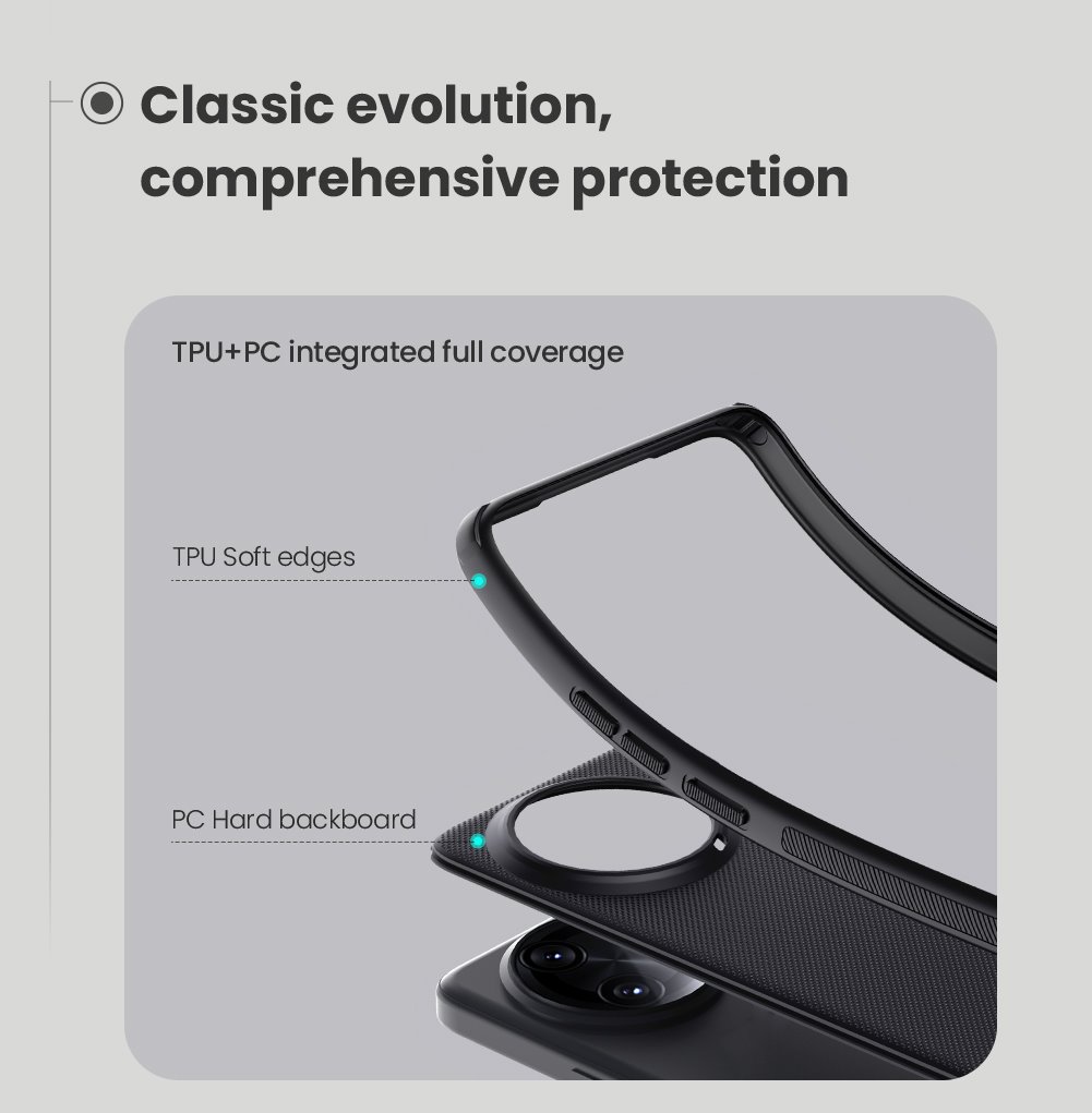 Kemény és tartós műanyagból áll a hátoldalon, TPU puha műanyag az oldalain.