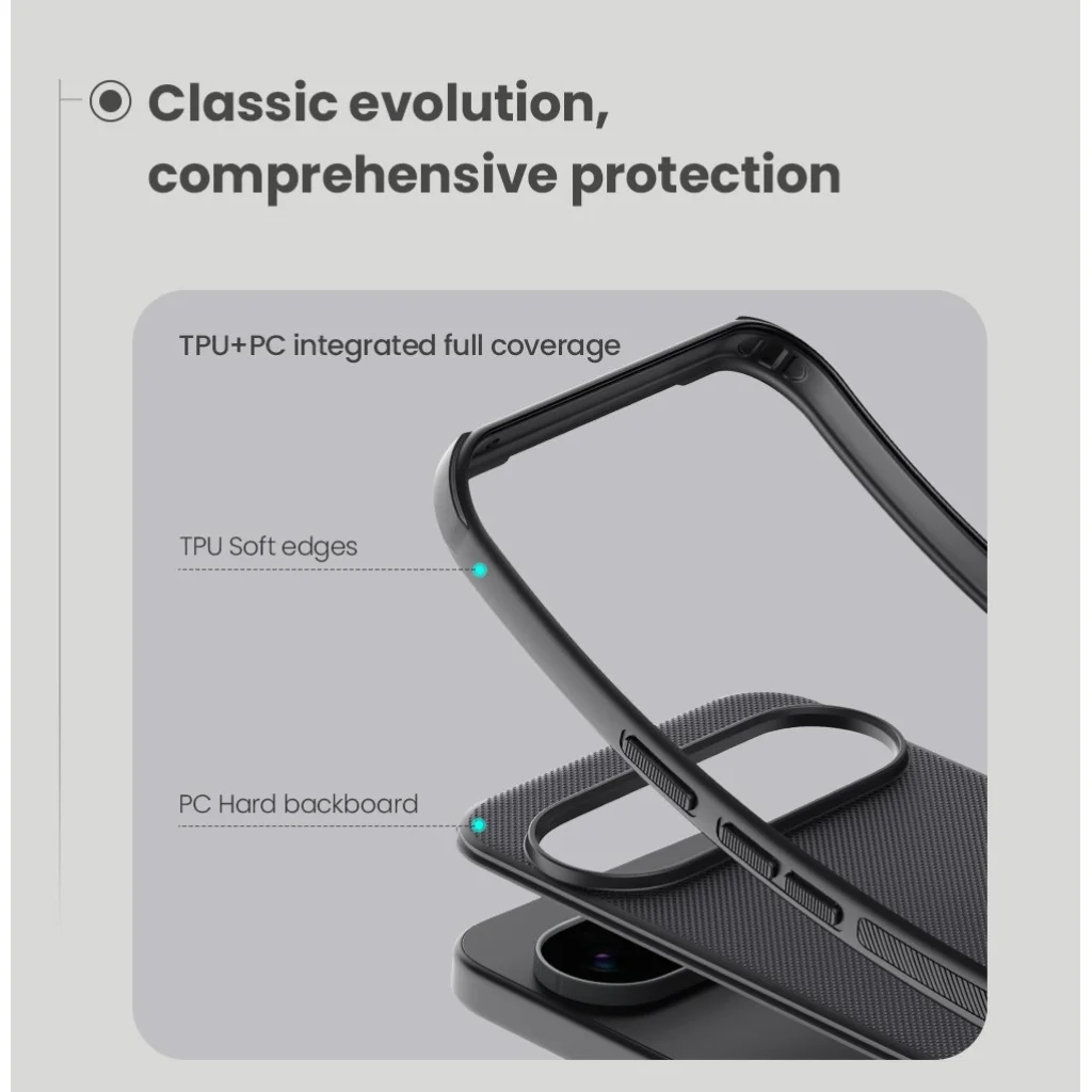 Hátul kemény és tartós műanyagból, oldalt pedig TPU puha műanyagból áll.