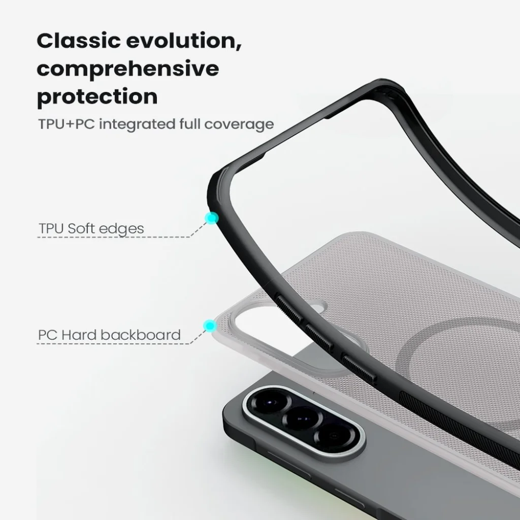 Hátulja kemény és tartós műanyagból, oldalai pedig TPU puha műanyagból állnak.