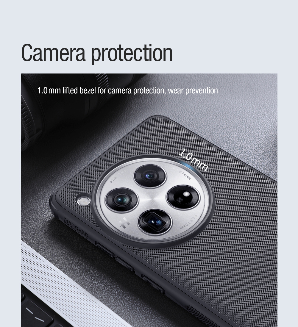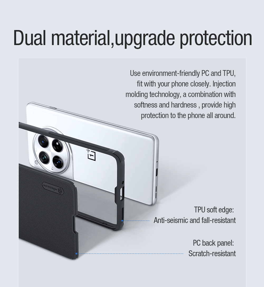 Kemény és tartós műanyagból áll a hátulján, valamint TPU puha műanyagból az oldalain.