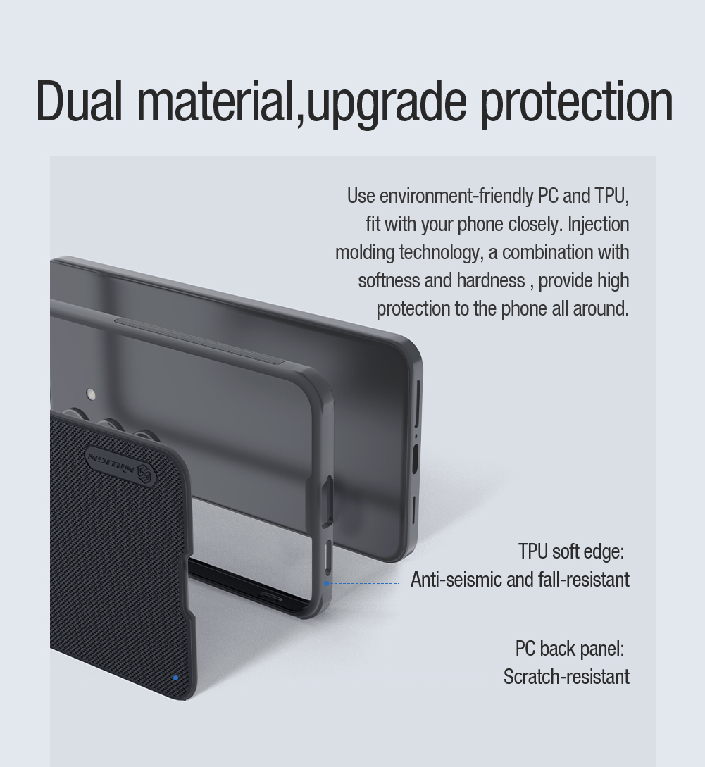 A hátlap kemény és tartós műanyagból, míg az oldalak TPU puha műanyagból készültek.