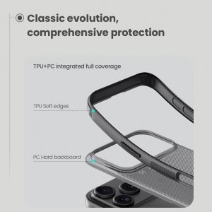 Kemény és tartós műanyagból áll a hátlapon, valamint TPU puha műanyagból az oldalakon.