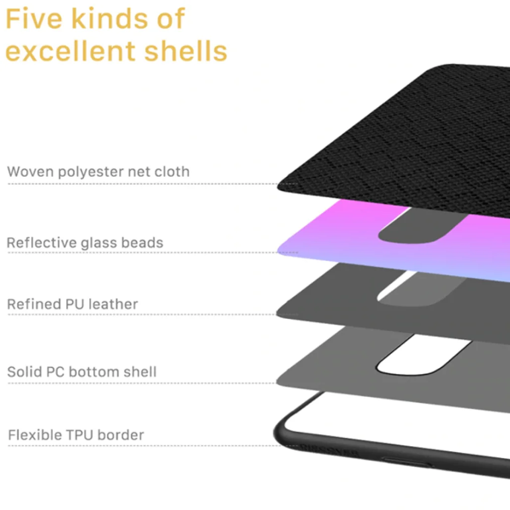 Egyedülálló többrétegű tok. Prémium minőségű TPU keret, PC réteg, PU bőr réteg, üveg réteg majd egy polyester réteg foglal helyet a tokon.
