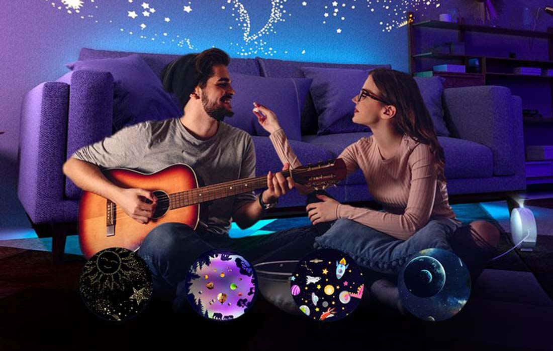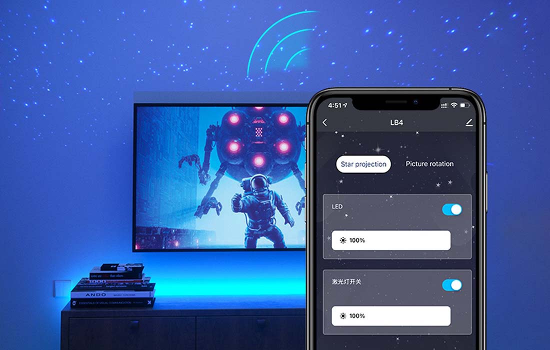 Hozz létre különleges hangulatot otthonodban a NiteBird LB4 Tuya csillagos vetítő segítségével. A vetítő és a mellékelt filmek használatával különféle hatásokat vetíthetsz ki, például csillagos égboltot. Emellett a megjelenített vetítés 360°-ban forog, a még jobb vizuális élményekért. Az alkalmazásokkal és hangutasításokkal történő vezérlés kényelmet biztosít, a menetrend- és időzítő funkció pedig lehetővé teszi az LB4 működésének személyre szabását.