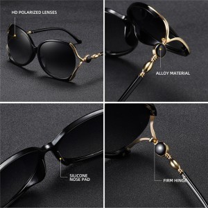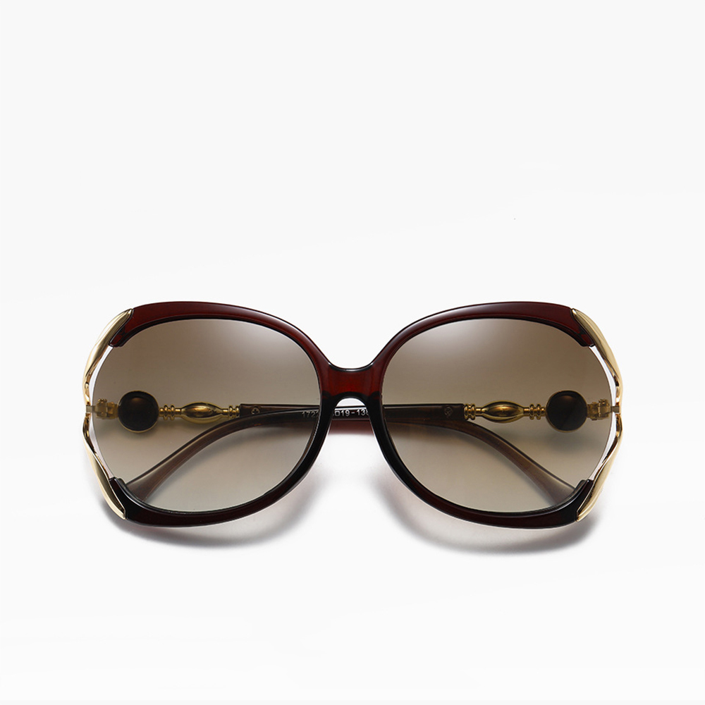 - Luxus ötvözet részletek: Az arany színű ötvözet díszítés a szár és a keret találkozásánál elegáns csavart és egyedi jelleget ad a napszemüvegnek, kiemelve annak prémium minőségét és a részletekre való odafigyelést.