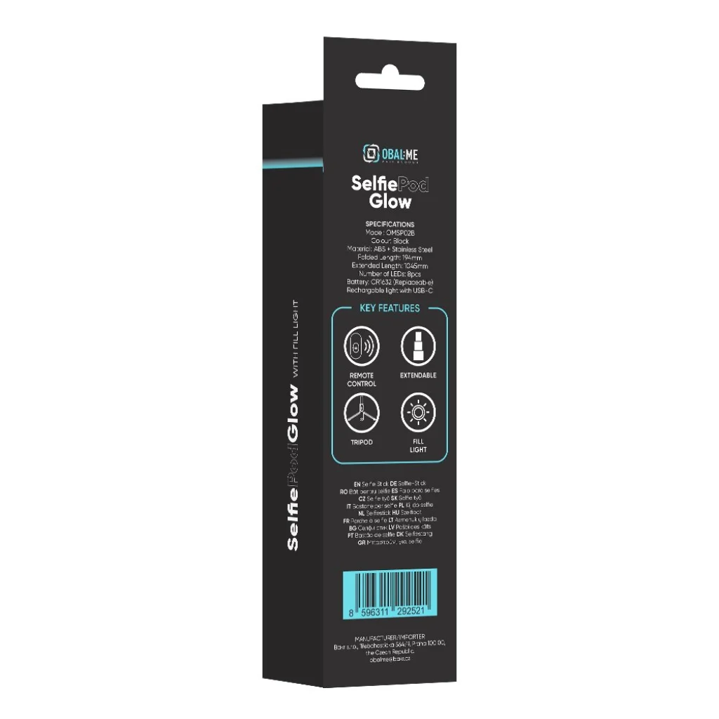Az OBAL:ME SelfiePod Glow Black a klasszikus SelfiePod dizájnt továbbfejlesztve beépített LED világítást kínál az arc és a környezet jobb megvilágítása érdekében.