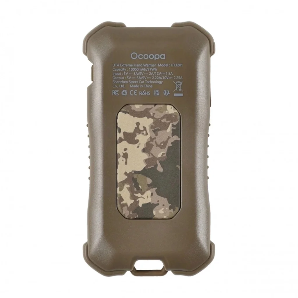 Termék leírás Ocoopa Kézmelegítő UT4 Extreme (UT3201-MC-GN) - Power Bankkal, Beépített Zseblámpával, IP56, Type-C, 10000mAh - Álcázott