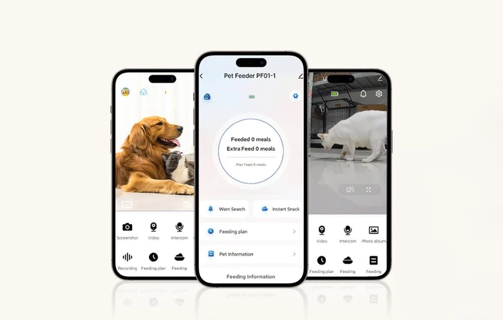 A mobilalkalmazásnak köszönhetően teljes ellenőrzést élvezhet háziállata etetése felett, függetlenül attól, hogy hol tartózkodik. Lehetőség van napi akár 6 étkezés beállítására és az adagok méretének igazítására a háziállat egyedi igényeihez. Az alkalmazás lehetővé teszi étkezések hozzáadását, értesítések megtekintését az ételmaradék szintjéről, háziállata információinak kezelését és egy 10 másodperces hangüzenet rögzítését, amely az etetési időben lejátszásra kerül. Ezzel a megoldással háziállata ismerős hangot hall majd az étkezésre hívás közben.