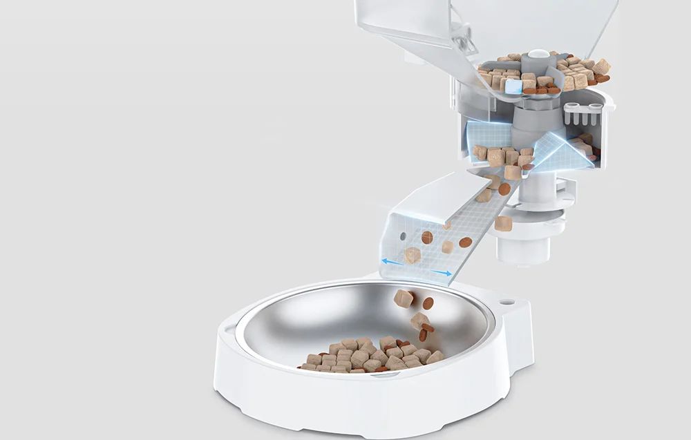 Az innovatív rendszer biztosítja a különböző típusú ételek - a száraz, a fagyasztott-szárított és vegyes formák zökkenőmentes adagolását. A széles nyílásokkal és lágy keverő mechanizmussal rendelkező speciális kialakítás megelőzi az eltömődést. Így biztos lehet benne, hogy háziállata mindig időben megkapja az ételét.