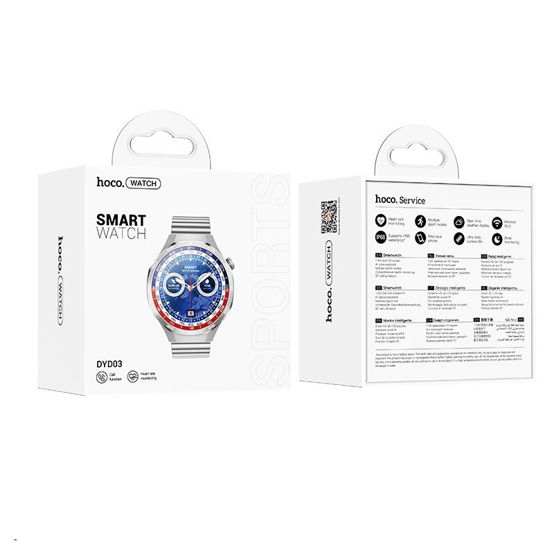 A Hoco DYD03 okosóra 1,53"-os kerek kijelzővel és beszélgetési funkcióval egy elegáns óra, amely ötvözi a stílusos megjelenést a funkciók széles skálájával. A beépített mikrofon és a Bluetooth 5.3 támogatásnak köszönhetően közvetlenül a csuklóról folytathat beszélgetéseket. Az óra egy 1,53 hüvelykes TFT képernyővel rendelkezik, amelynek felbontása 360 × 360, biztosítva a magas képminőséget és a könnyű használatot. Belsejében egy Bluetrum AB8919 processzor és 128 MB memória található, ami garantálja az összes funkció gördülékeny működését. A 350 mAh kapacitású akkumulátor lehetővé teszi, hogy az órát 3–5 napig használja töltés nélkül. A DYD03 modell támogatja az alkalmazásértesítéseket, az alvásfigyelést, a fizikai aktivitás rögzítését, és más hasznos funkciókat. A felhasználó 21 nyelvi verzió közül választhat, így ez az óra kiváló választás a világ különböző szegleteiből származó emberek számára. Műszaki adatok:
