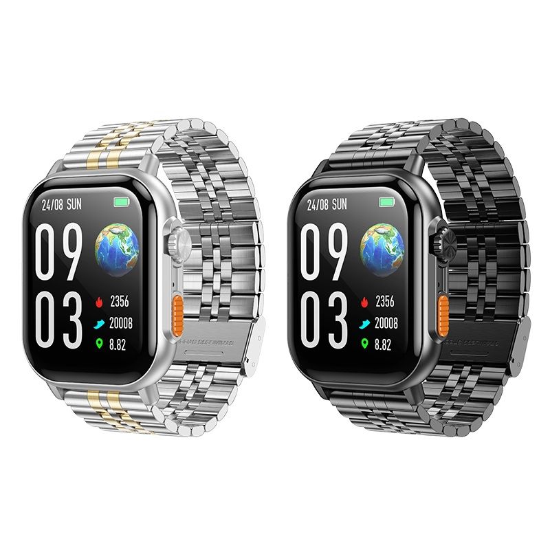 A Hoco DYD02 okosóra egy nagy, 2,02 hüvelykes kijelzővel és beszélgetési funkcióval rendelkező modern eszköz, amely ötvözi az elegáns design-t a mindennapi praktikus funkciókkal. A Bluetooth 5.2 + 4.0 kapcsolódásnak köszönhetően lehetővé teszi, hogy közvetlenül a csuklóról beszélgessen, biztosítva a kényelmet minden helyzetben. A DYD02 modell 2,02 hüvelykes TFT kijelzővel rendelkezik, melynek felbontása 320 × 385, biztosítva a tiszta képet és a könnyű használatot. Az okosórát a JL7012F6 chip működteti és 128 MB memória áll rendelkezésre, ami sima működést és alapvető funkciók elérését teszi lehetővé. A DaFit alkalmazásnak köszönhetően a felhasználó szinkronizálhatja az adatokat a telefonnal és testreszabhatja az óra funkcionalitását saját igényei szerint. A 300 mAh akkumulátor egyetlen töltéssel optimális működési időt biztosít. Az eszköz kompatibilis az Android 4.4+ és iOS 9.0+ rendszerekkel, így széles körű felhasználók számára nyújt univerzális megoldást. Műszaki adatok: