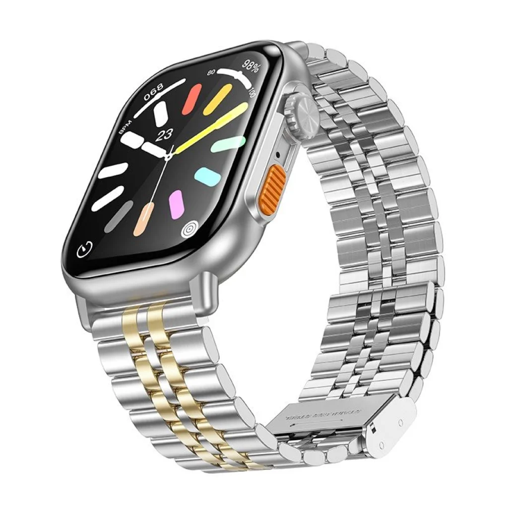 A Hoco DYD02 okosóra egy nagy, 2,02 hüvelykes kijelzővel és beszélgetési funkcióval rendelkező modern eszköz, amely ötvözi az elegáns design-t a mindennapi praktikus funkciókkal. A Bluetooth 5.2 + 4.0 kapcsolódásnak köszönhetően lehetővé teszi, hogy közvetlenül a csuklóról beszélgessen, biztosítva a kényelmet minden helyzetben. A DYD02 modell 2,02 hüvelykes TFT kijelzővel rendelkezik, melynek felbontása 320 × 385, biztosítva a tiszta képet és a könnyű használatot. Az okosórát a JL7012F6 chip működteti és 128 MB memória áll rendelkezésre, ami sima működést és alapvető funkciók elérését teszi lehetővé. A DaFit alkalmazásnak köszönhetően a felhasználó szinkronizálhatja az adatokat a telefonnal és testreszabhatja az óra funkcionalitását saját igényei szerint. A 300 mAh akkumulátor egyetlen töltéssel optimális működési időt biztosít. Az eszköz kompatibilis az Android 4.4+ és iOS 9.0+ rendszerekkel, így széles körű felhasználók számára nyújt univerzális megoldást. Műszaki adatok: