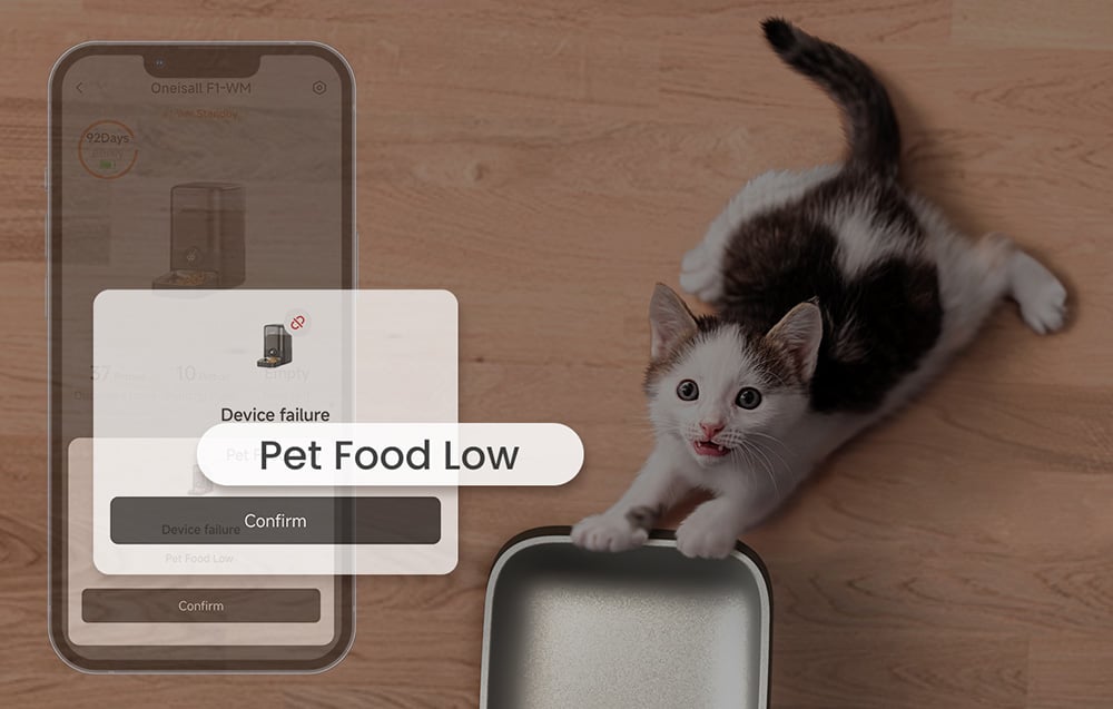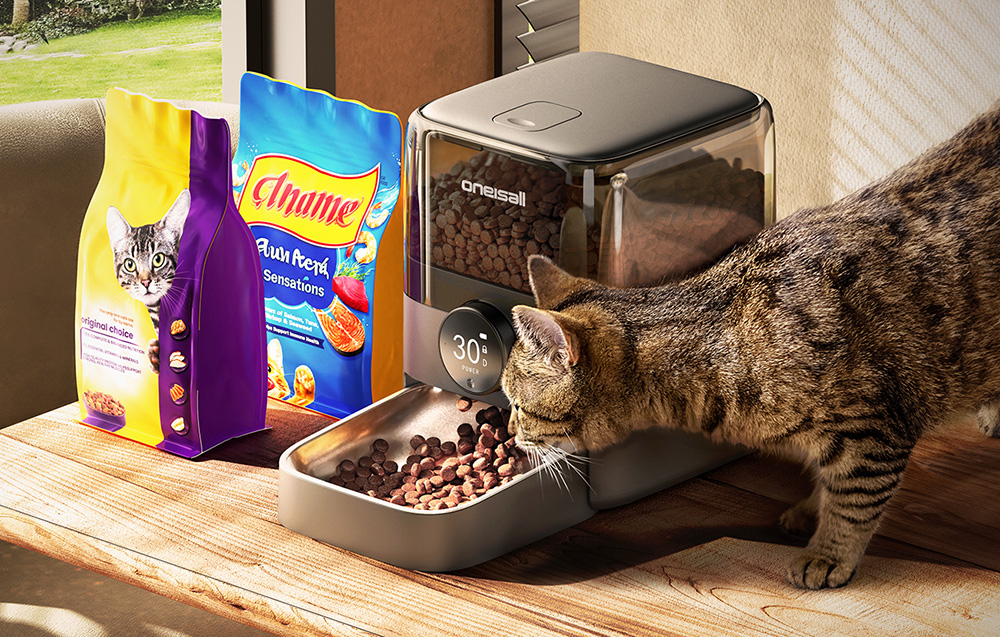 A Oneisall F1-M egy automatikus ételadagoló, amelyet úgy terveztek, hogy a háziállat és gondozója számára egyaránt kényelmes legyen a mindennapokban. Nagy kapacitásával és alkalmazással vezérelhető funkciójával a készülék akkor is biztosítja a rendszeres étkezést, amikor Ön nincs otthon.