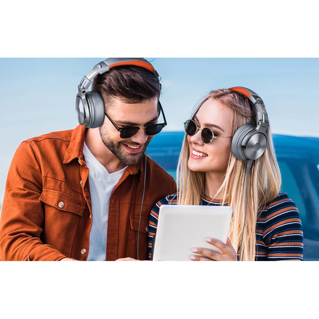 Az OneOdio fejhallgatók 2 csatlakozóval rendelkeznek (6.35mm és 3.5mm). A készletben 2 kompatibilis kábel található, amelyek lehetővé teszik a Pro 50 csatlakoztatását okostelefonhoz, tablethez, laptophoz, PS4/PS5-höz, billentyűzethez és gitárhoz, többek között. Az egyik kábel mikrofont is tartalmaz. És ez még nem minden! Két fejhallgatópárt is csatlakoztathat az ön által választott eszközhöz, és megoszthatja zenei szenvedélyét szeretteivel.