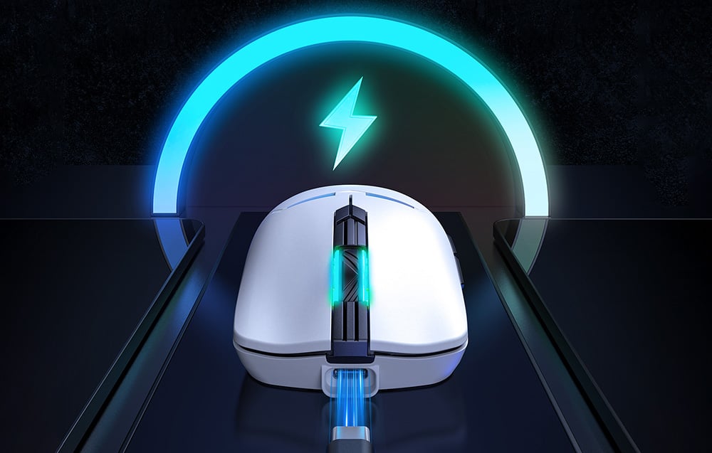 Az egér 600 mAh-s újratölthető akkumulátorral van felszerelve, amely hosszú működési időt biztosít egyetlen feltöltéssel. Az energiatakarékos üzemmód automatikusan kikapcsolja az egeret egy bizonyos ideig tartó inaktivitás után, ami tovább növeli az üzemidőt.